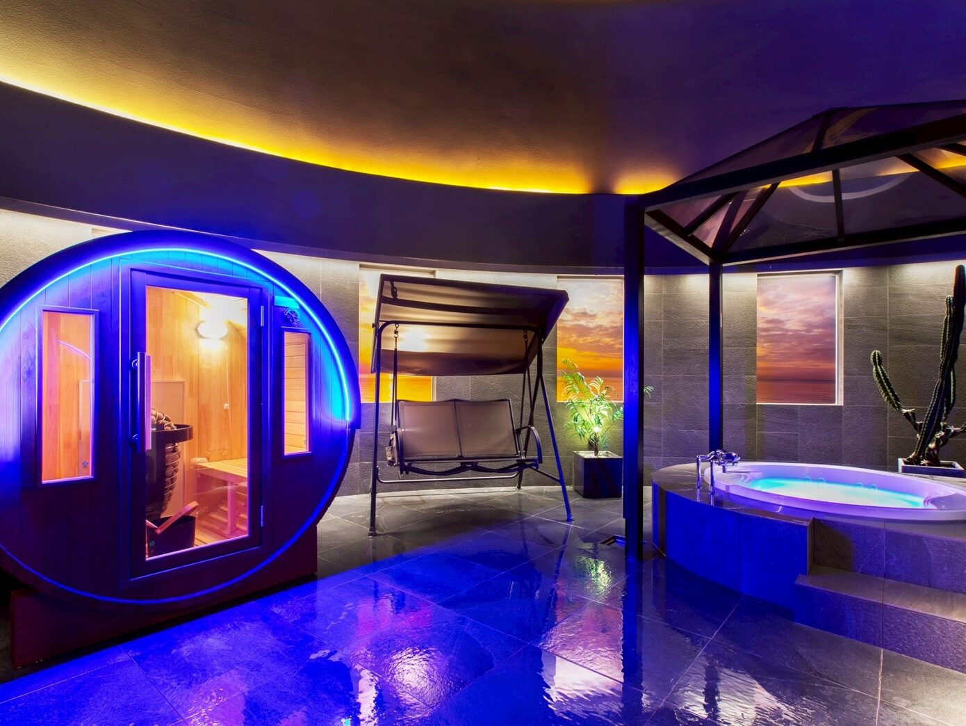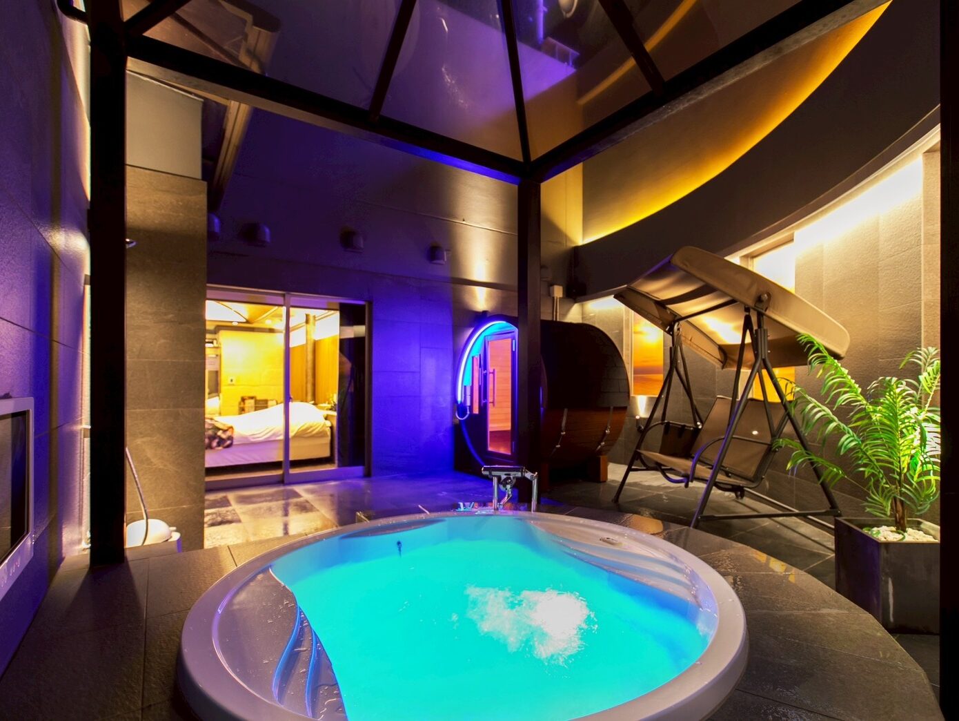 夜を彩る「ブルーLED」と「ジャグジー」の共演