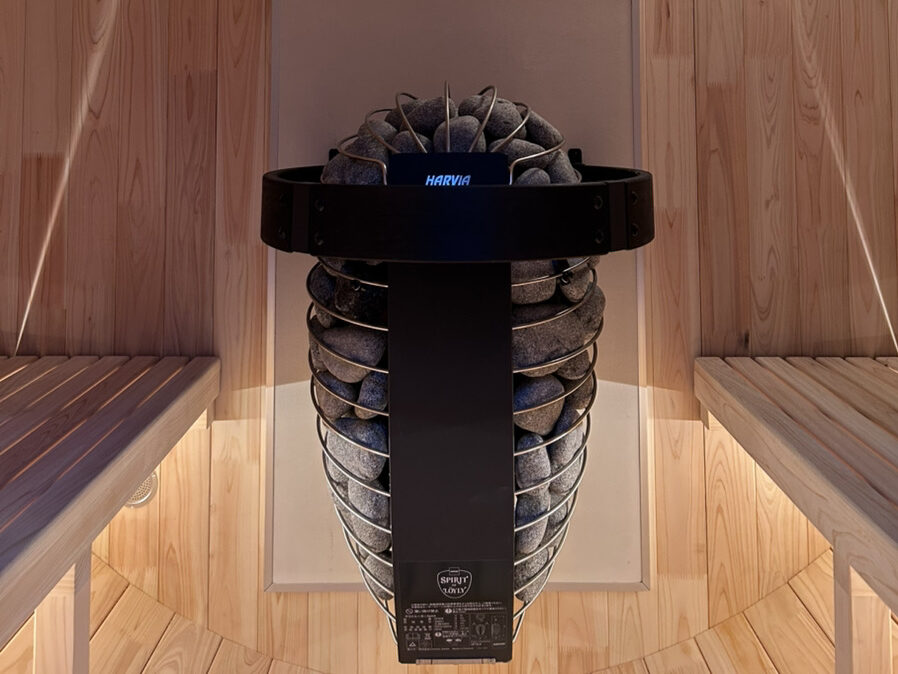 サウナ内部には、デザイン性とパワーを兼ね備えた最新ヒーター「HARVIA SPIRIT 6」を導入しました。