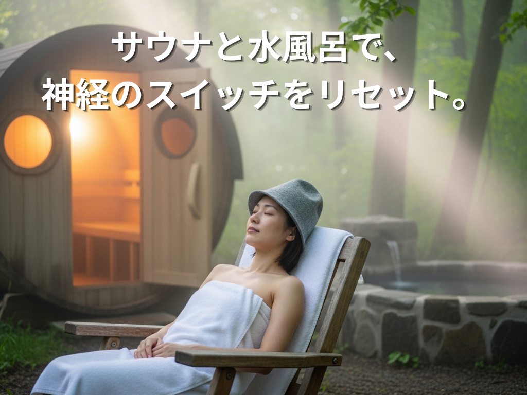 その後、水風呂を経てゆっくりと外気浴(休憩)を行うことで、今度は副交感神経が優位になり、心身を緊張から解きほぐしてくれます。